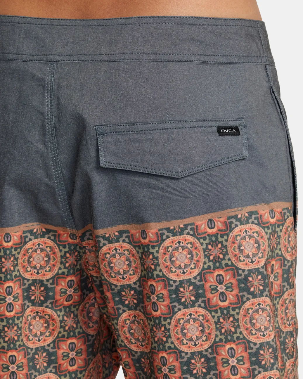 Bold style meets durable comfort in the RVCA County Boardshorts 18″. Made from Heritage Stretch with recycled polyester, these fixed waist boardshorts feature custom Kelsey Brookes Collection allover print, with an adjustable drawcord, reinforced seams and pockets throughout. Topped with RVCA branding. Featured here in the Burnt Orange colorway.