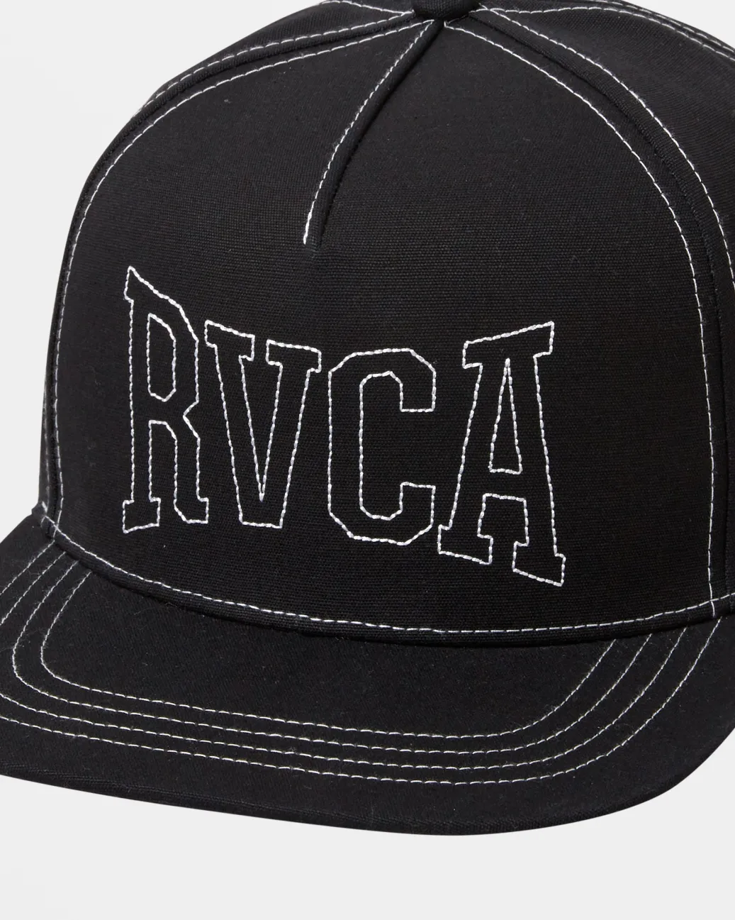 Crafted from breathable organic cotton fabric, the Stitch flat bill hat features subtle RVCA embroidery and a snapback closure that ensures a secure fit whether lounging or skating.