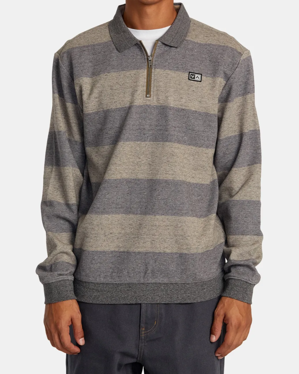 The Eraser half-zip pullover pairs lounge-worthy comfort with timeless polo style. Made from a soft blended cotton, this striped sweatshirt is a versatile layer essential. Featured here in the Wood colorway.