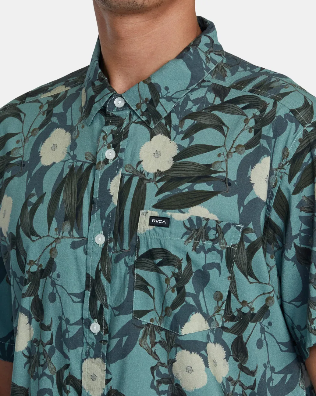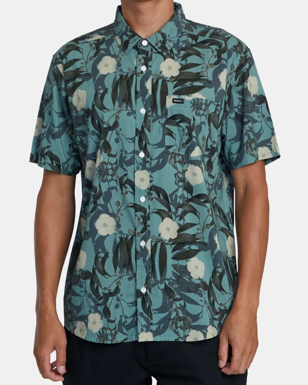 Experience easy summer style with RVCA’s Botanical printed short-sleeve woven shirt. Made from a premium blend of cotton and viscose to keep it feeling soft and light, this regular-fit shirt features a classic collar, a single chest pocket, and a scalloped hem. Featured here in the Green Tea colorway.