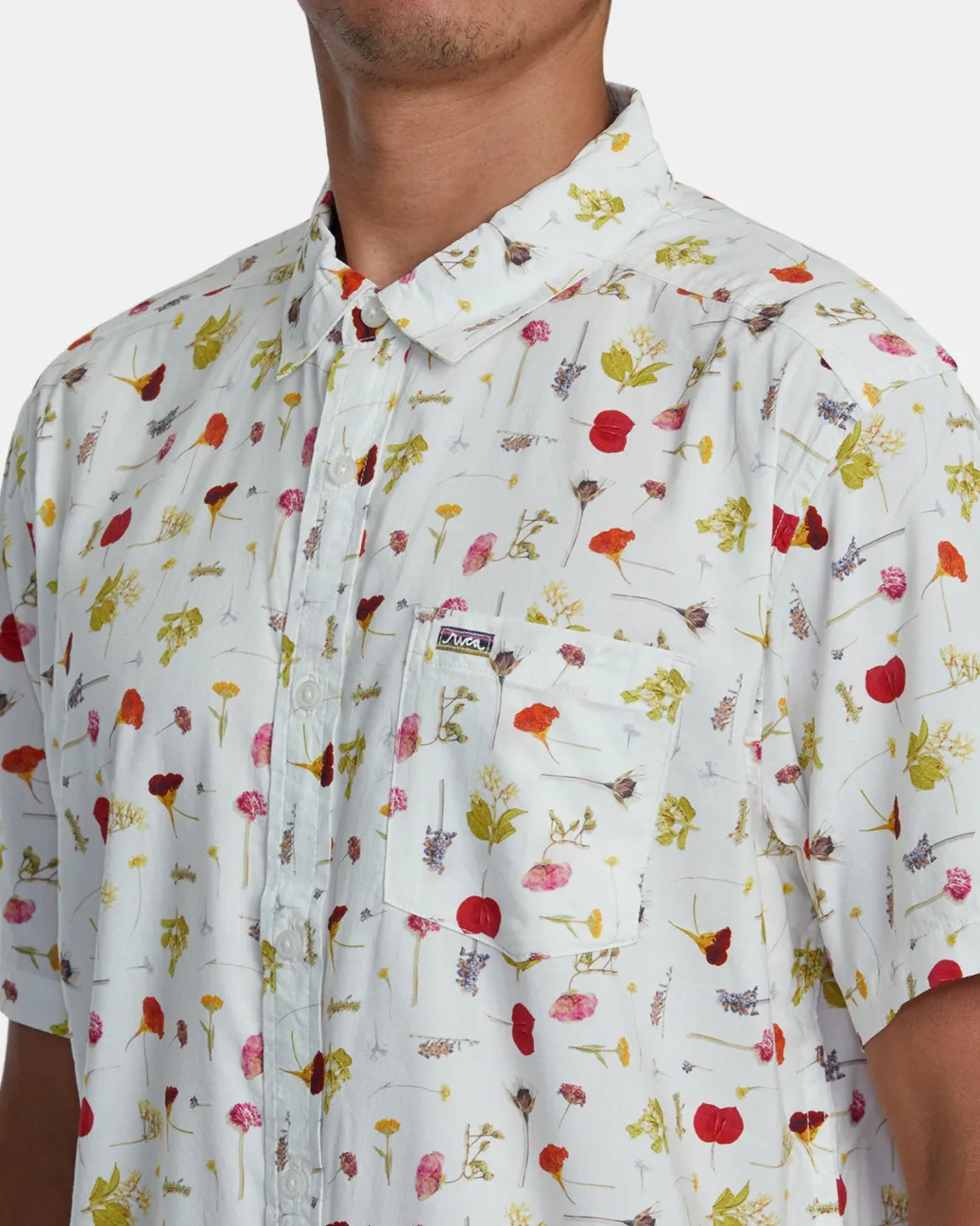 Keep it fresh with RVCA’s Oblow Pressed Short-Sleeve Woven Shirt. Made from a premium blend of cotton and viscose to keep it feeling soft and light, this regular-fit shirt features a classic collar, single chest pocket, scalloped hem, and a floral Mark Oblow ANP collection print. Featured here in the White colorway.