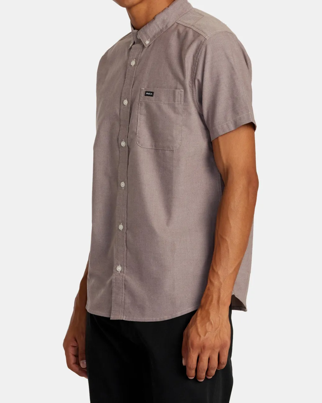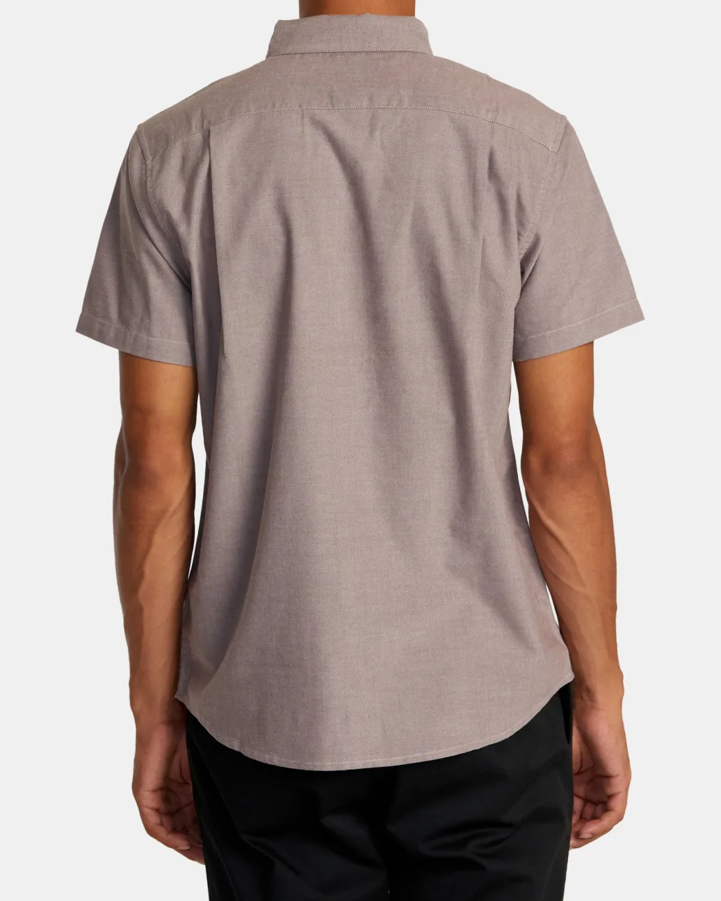 The RVCA That’ll Do shirt puts style and comfort in the game with a slim fit, stretch cotton blend, button down collar, and scalloped hem. Featured here in the Plum Ash colorway.