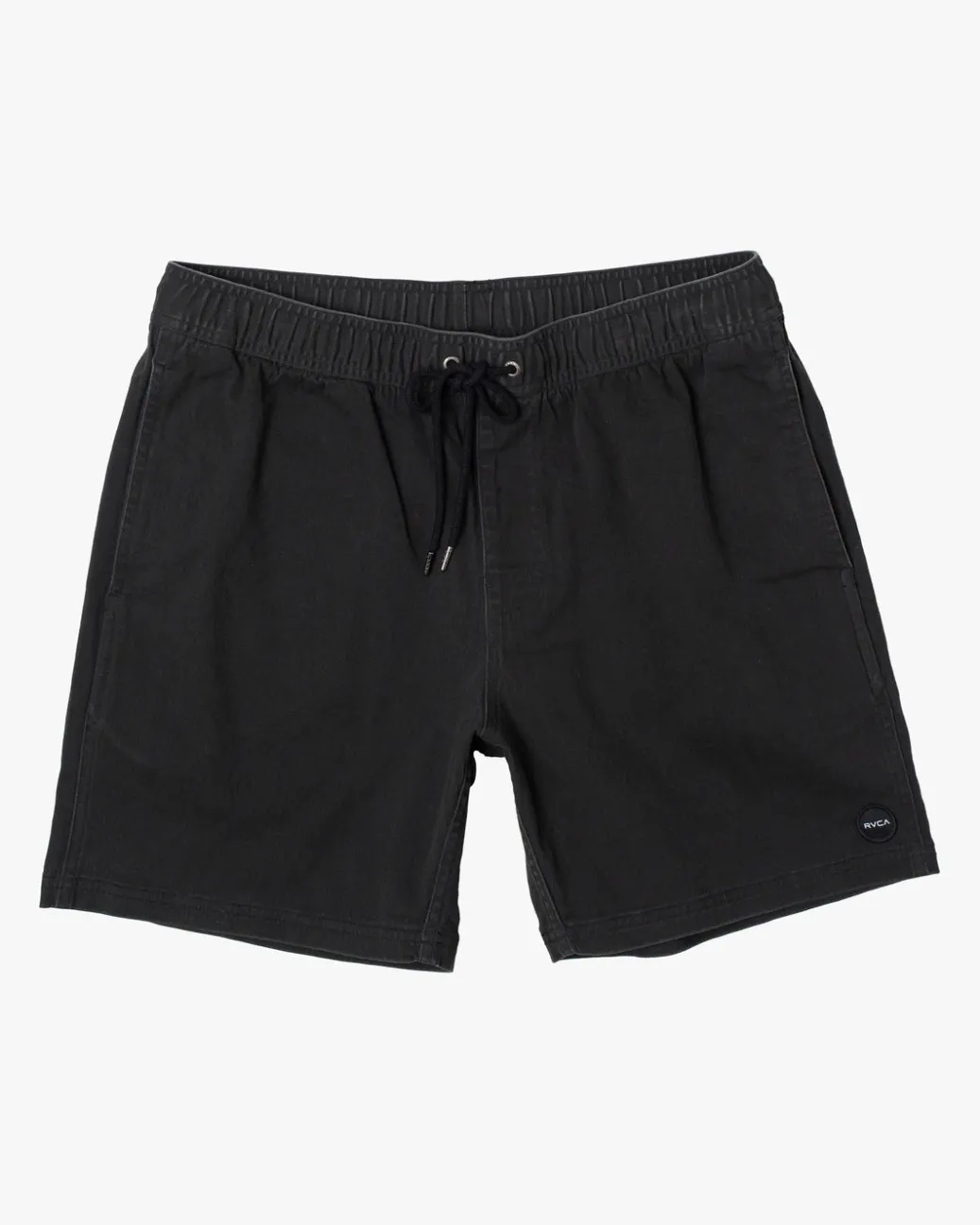 A solid short that won’t hold you back, the RVCA Escape Elastic Waist Short features a comfort-driven design with functional stretch. A solid Elastic Waist short, the Escape keeps to utilitarian lines with a drawcord a the waist, side seam pockets, and a back pocket with a RVCA woven label. A heavy enzyme wash offers the short a broken-in look and feel. Featured here in the Black colorway.