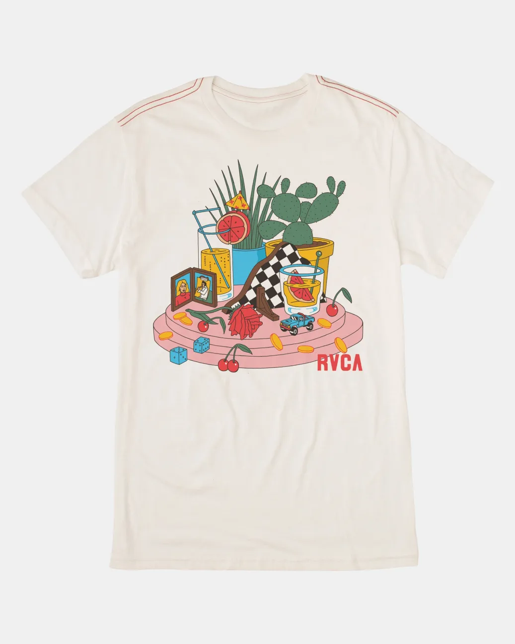 Featuring custom artwork by artist Luke Pelletier, the Luke Still Life T-Shirt instantly upgrades your everyday look. This ANP Collection tee is crafted of soft cotton fabric, with a classic crew neck and our trademark RVCA red stitch. Featured here in the Antique White colorway.