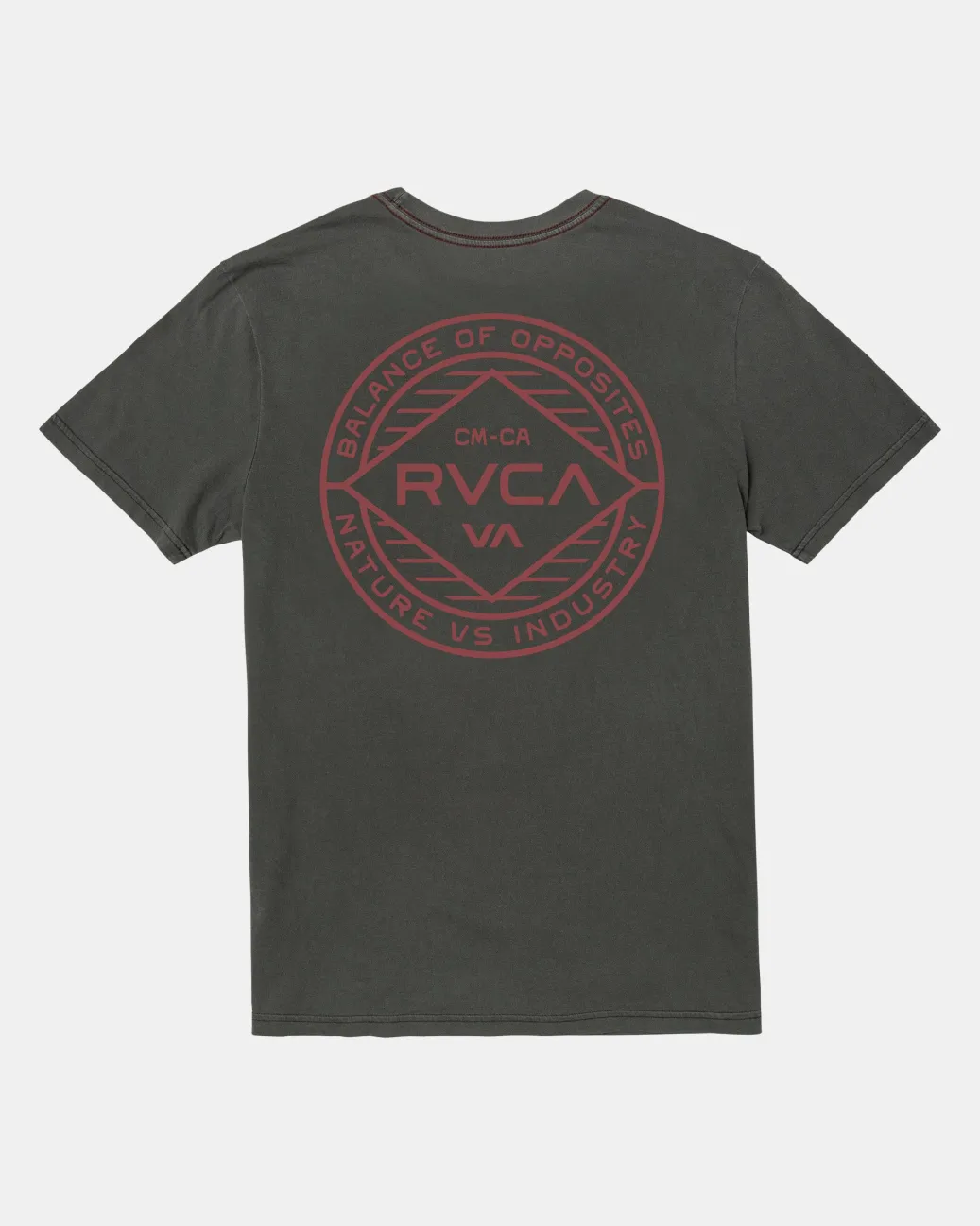 The Wordmarks slim-fit RVCA t-shirt has short sleeves and a crew neck for a classic look. Made from soft, lightweight cotton jersey fabric with a vintage wash and red stitch detailing, it features screen logo graphics on the front and back for an understated style. Featured here in the Pirate Black colorway.