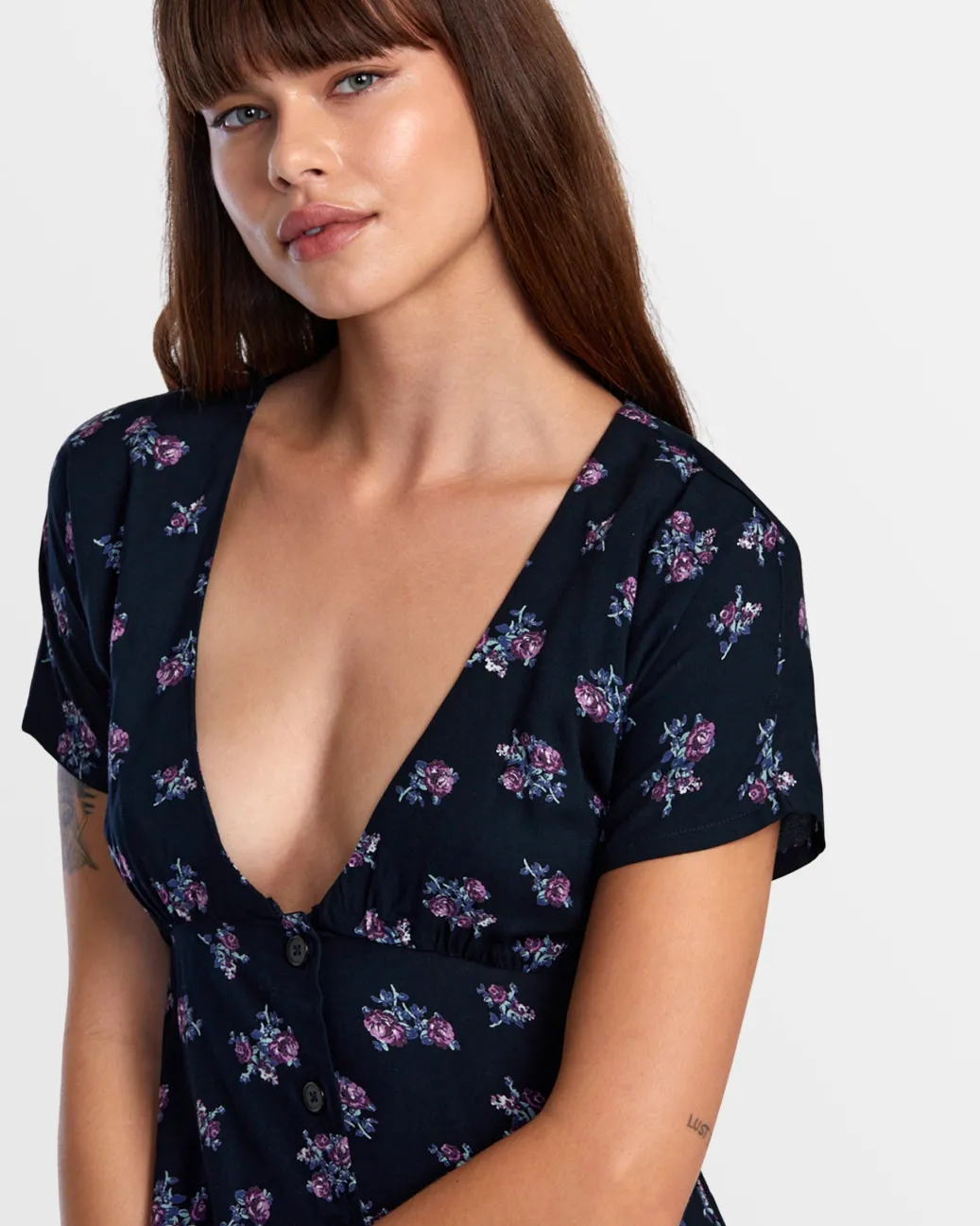 Silky-smooth and beautifully draped, RVCA Women’s Understated printed mini dress combines Livaeco fabric, a wide V-neck, and short dolman sleeves to create a unique and flattering silhouette. Featured here in the RVCA Black colorway.