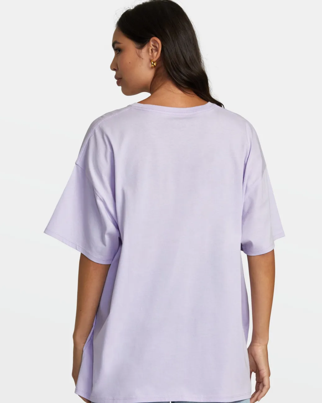 The Social Butter Fly oversized tee pairs lightweight organic cotton construction with a bold chest graphic in pigment-dyed ink to give it a vintage look. Featured here in the Pastel Lilac colorway.
