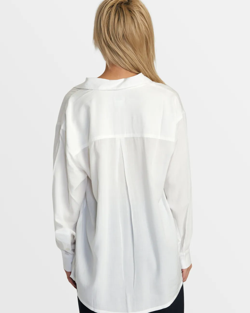 A clean and understated long-sleeve button-up that’s perfect for everyday styling. The oversized silhouette is crafted of viscose fabric that’s soft and lightweight, perfect for a lightweight layer.