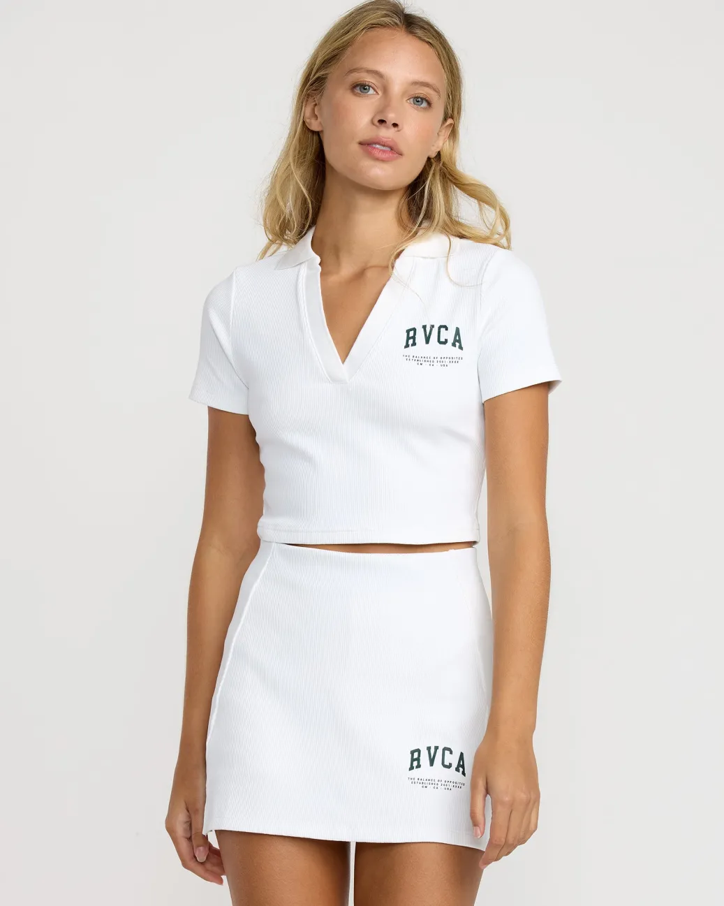 Turn preppy on its head with the Sport Chase Copped Polo Shirt. Crafted in stretch nylon rib for texture and comfort, this cropped, form-fitting athletic staple features self collar, placket, and metal branding for an edgy take on the classic polo. Screen-printed art at the left chest. Featured here in the Whitecap colorway.