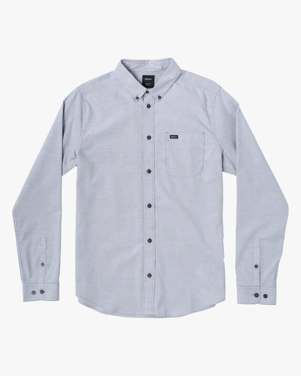 The RVCA That’ll Do button-down long-sleeve shirt for boys features a slim fit, collar neck, single chest pocket with brand label, and stretchy cotton blend fabric that will have him ready for the school day or weekend adventures ahead.