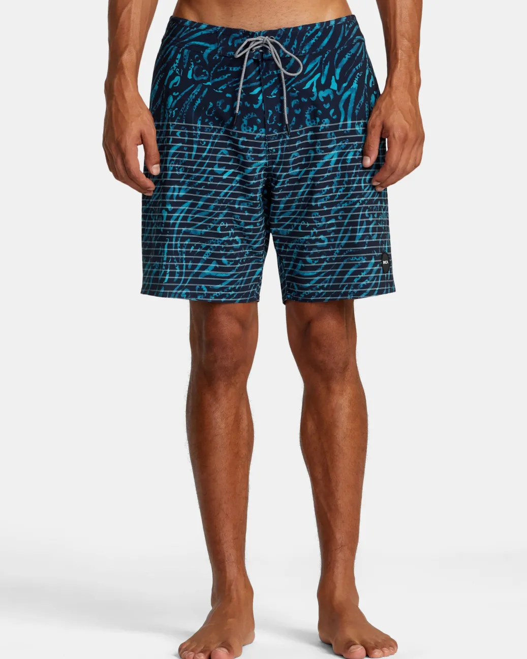 Part of our exclusive Curren Caples Collection, the RVCA Curren Boardshorts 18″ offer comfort, function and bold vibes in one. Made from 4-Way Dobby Stretch, these printed boardshorts feature a zip fly closure with drawcord, side and back pockets, reinforced stitching and RVCA logos throughout. Featured here in the Dark Denim colorway.