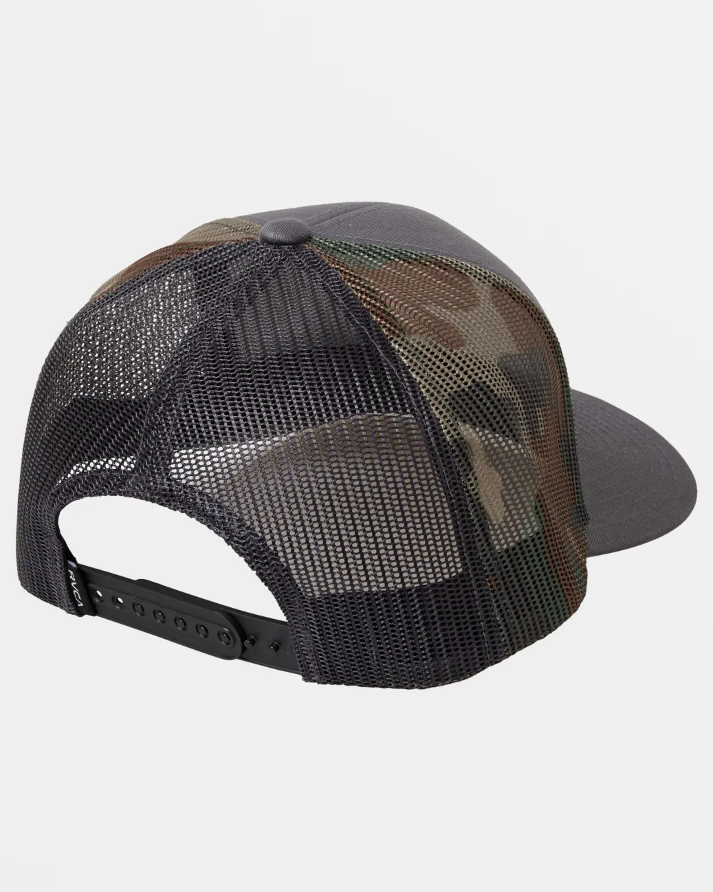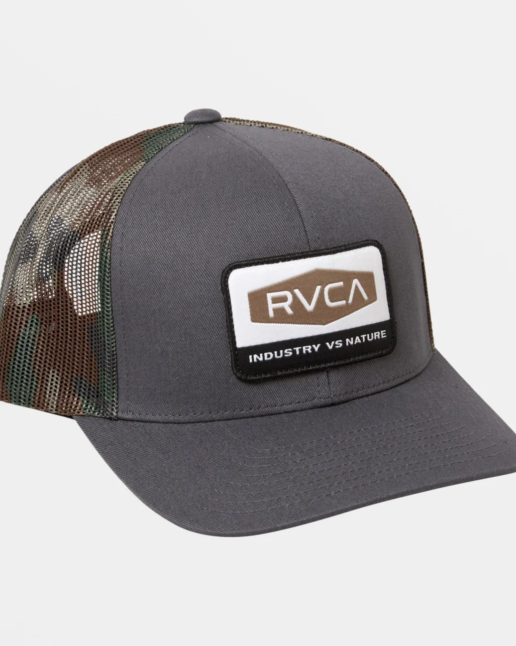 The Mission Trucker Hat is breathable, comfortable and always in style. Made from soft twill with mesh backing, an adjustable closure and curved brim. Topped with a RVCA logo patch. Featured here in the Dark Grey colorway.