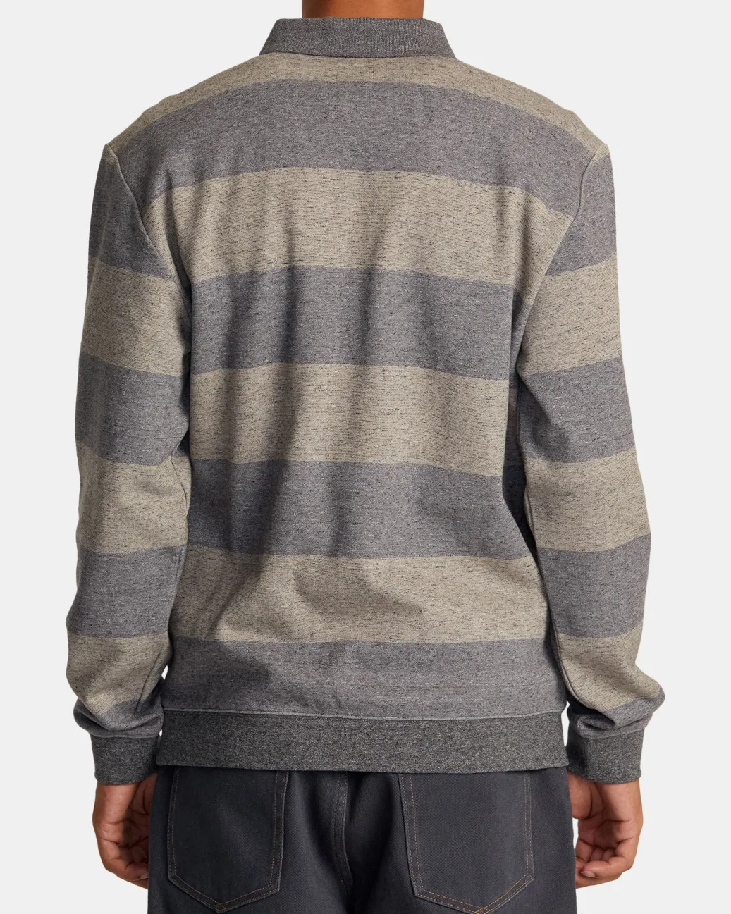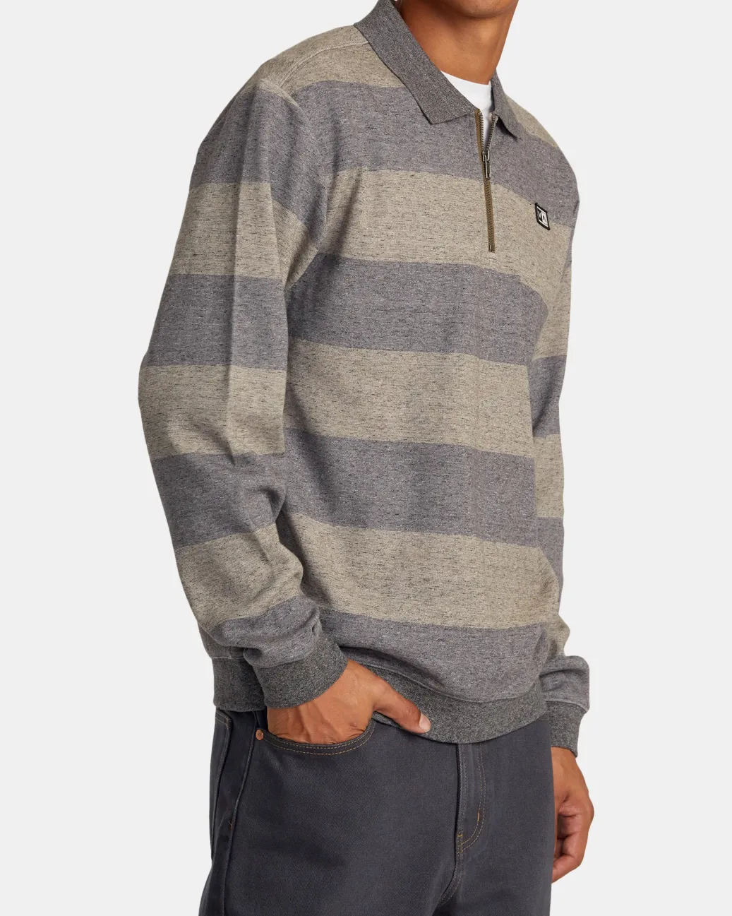 The Eraser half-zip pullover pairs lounge-worthy comfort with timeless polo style. Made from a soft blended cotton, this striped sweatshirt is a versatile layer essential. Featured here in the Wood colorway.