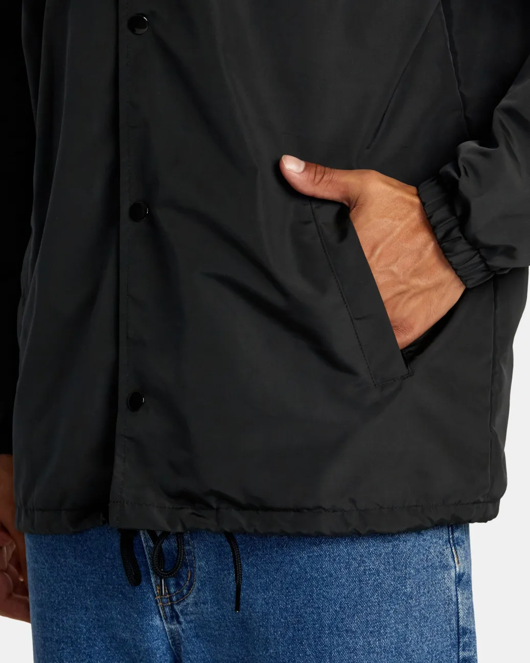 The RVCA Island Hex Hooded Coaches Jacket combines ultimate coverage and bold camo style in one. Made from water-repellent polyester with an adjustable fleece hood, this fully-lined coaches jacket features front snap buttons, elastic cuffs, a drawcord hem, hand pockets and Hawaii Collection prints throughout. Featured here in the Black colorway.