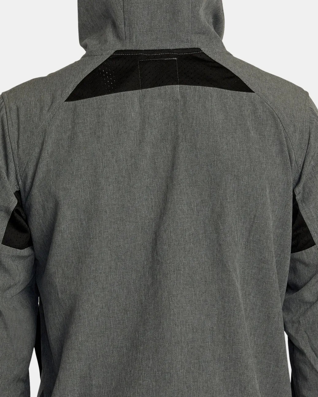 The RVCA Yogger Zip-Up Hooded Jacket II offers ultimate protection and style for days. Made from premium 4-Way Stretch, this men’s hooded jacket features a front zip closure, elastic hem and cuffs, adjustable toggles at the hood and pockets throughout for your needs. Topped with VA branding. Featured here in the Charcoal Heather colorway.