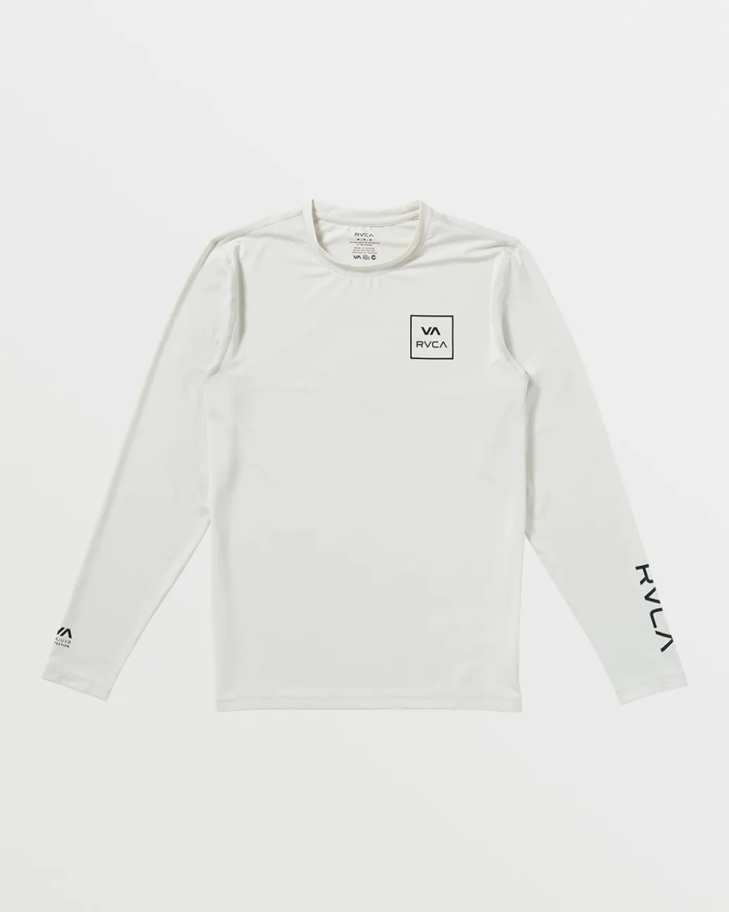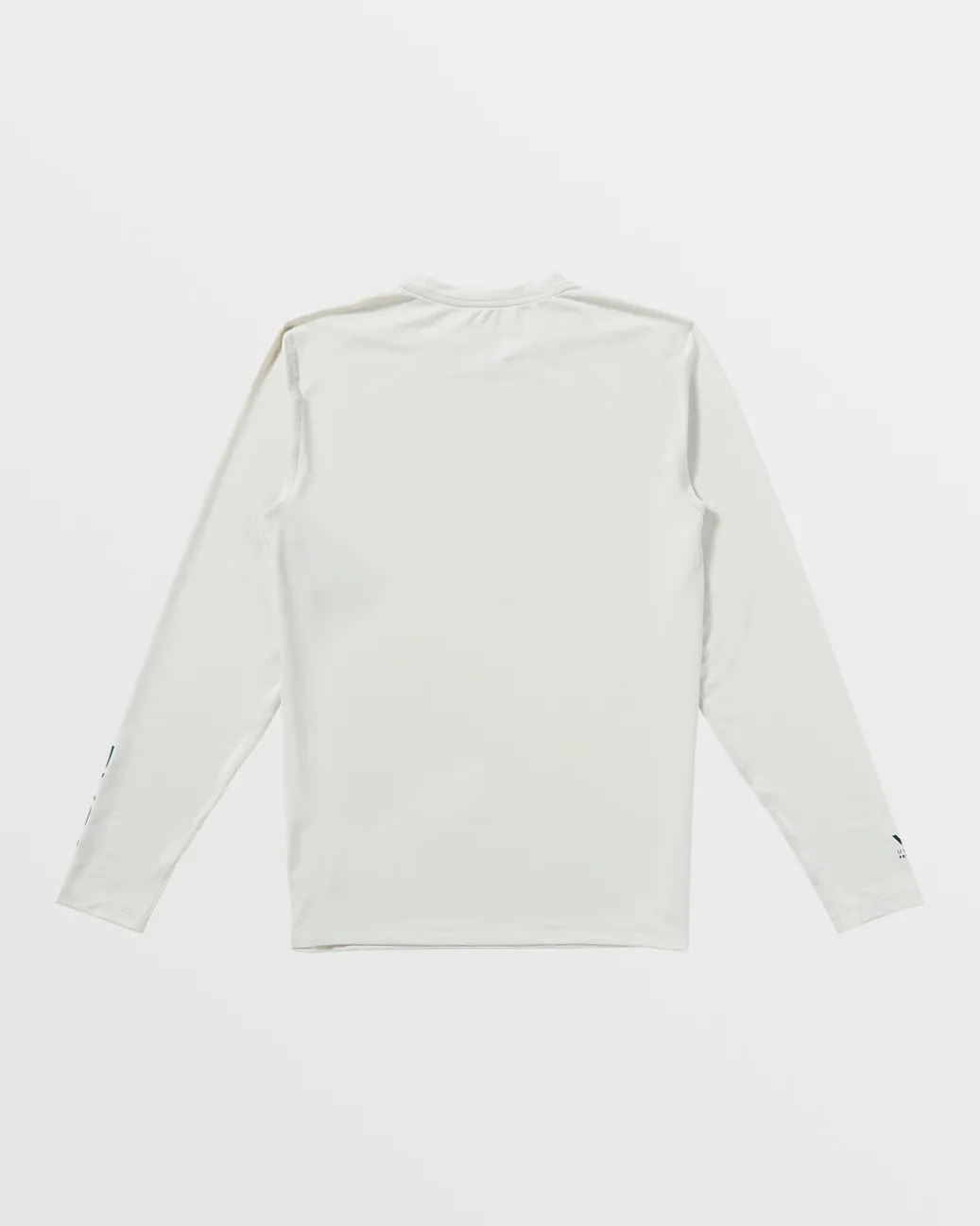 Gear up for an action-packed day in the waves with this long-sleeve rashguard by RVCA. Crafted of soft and stretchy recycled fabric with enhanced sun protection properties, this pullover surf top has a snug fit, raglan sleeves for increased mobility, and an internal bottom hem key loop for convenience. Featured here in the Silver Bleach colorway.
