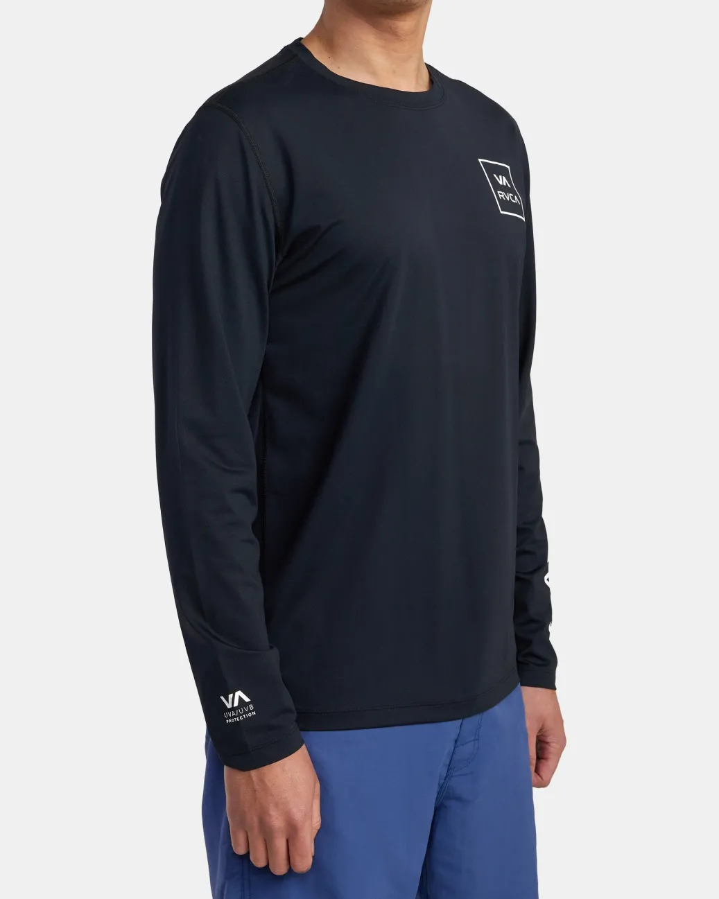 Gear up for an action-packed day in the waves with this long-sleeve rashguard by RVCA. Crafted of soft and stretchy recycled fabric with enhanced sun protection properties, this pullover surf top has a snug fit, raglan sleeves for increased mobility, and an internal bottom hem key loop for convenience. Featured here in the Black colorway.