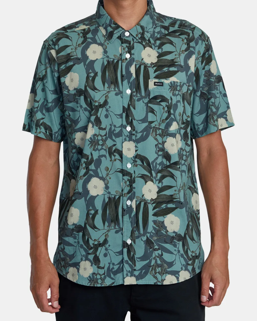 Experience easy summer style with RVCA’s Botanical printed short-sleeve woven shirt. Made from a premium blend of cotton and viscose to keep it feeling soft and light, this regular-fit shirt features a classic collar, a single chest pocket, and a scalloped hem. Featured here in the Green Tea colorway.