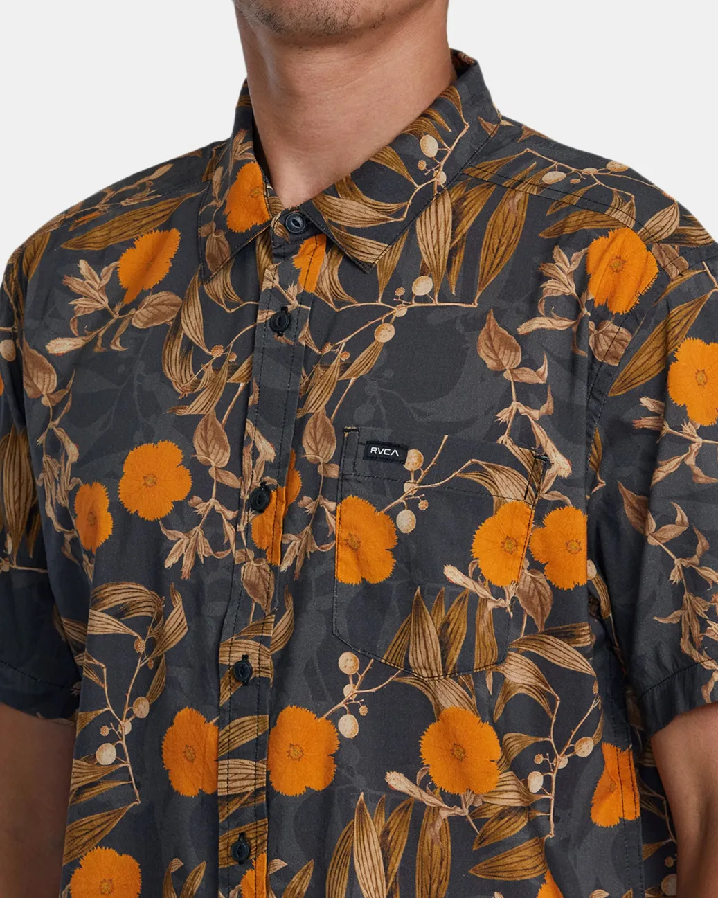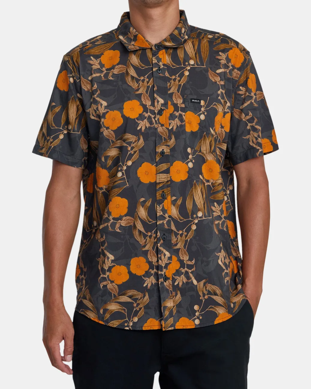 Experience easy summer style with RVCA’s Botanical printed short-sleeve woven shirt. Made from a premium blend of cotton and viscose to keep it feeling soft and light, this regular-fit shirt features a classic collar, a single chest pocket, and a scalloped hem. Featured here in the Black colorway.