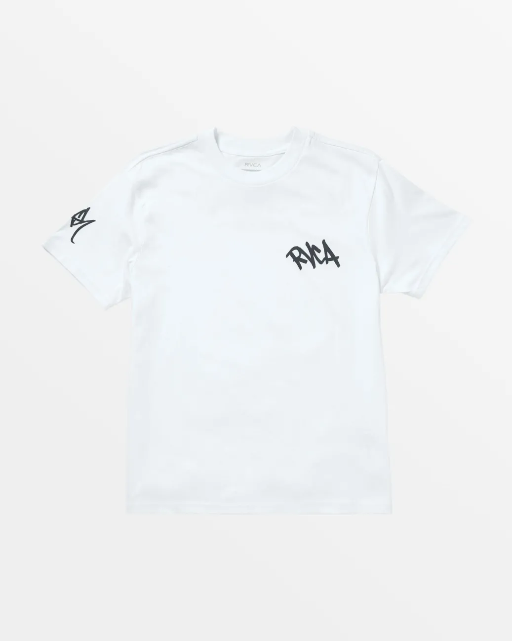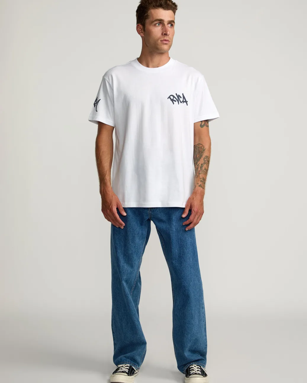 Crafted of organic cotton with a quality, mid-weight feel, this RVCA crewneck tee features special edition artwork by ANP artists Stash X Bedwin. Featured here in the White colorway.