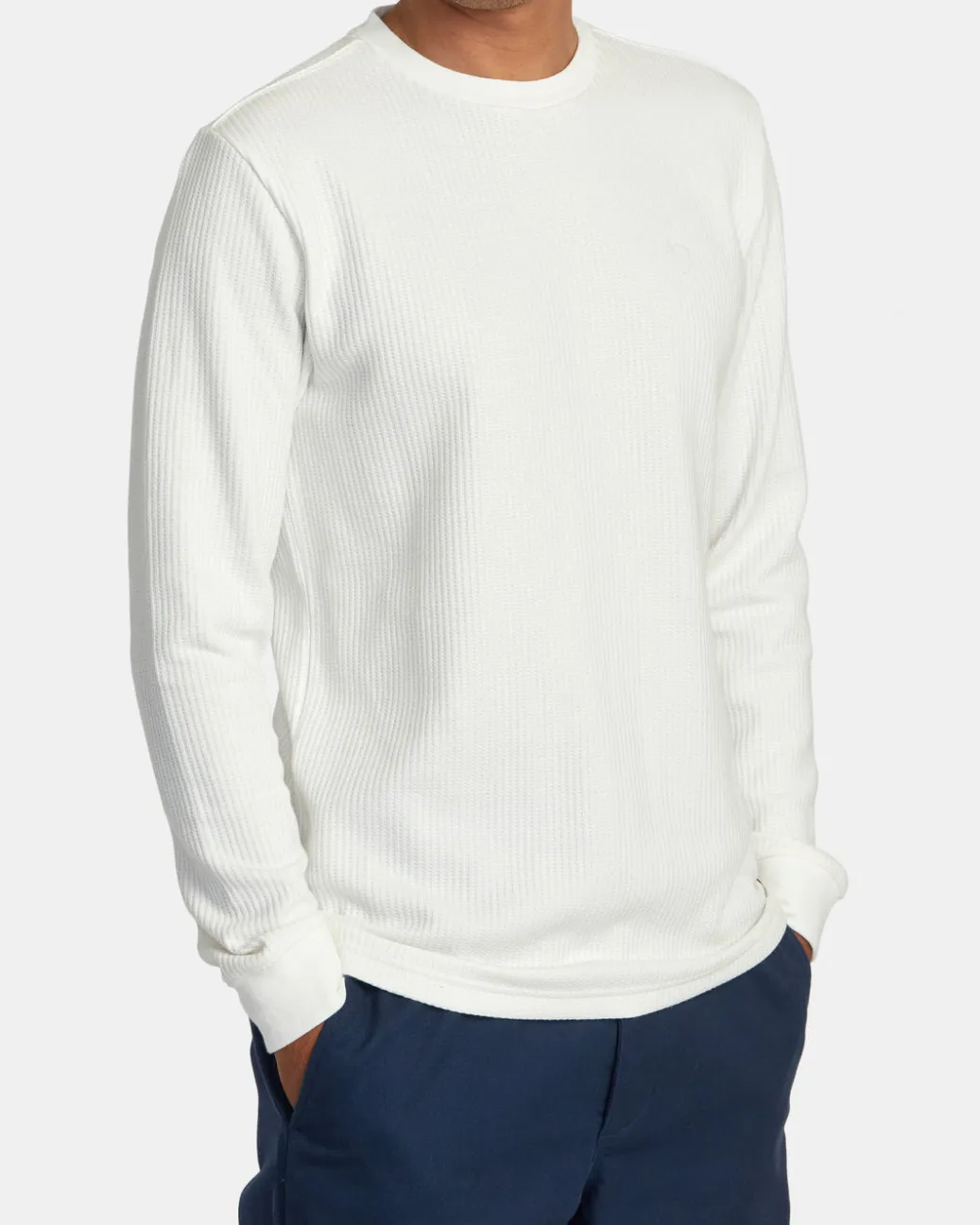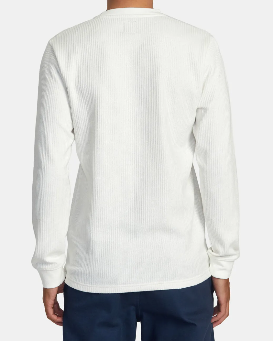 Designed to layer around the clock, the RVCA Dayshift Long Sleeve Thermal Tee brings a premium feel to the cold season essential. Made from a soft, blended waffle knit, the slightly fitted men’s long sleeve t-shirt keeps a classic cut with a rounded hem, adding a woven label to the left hem.Modern takes on timeless workwear silhouettes, the Dayshift Collection combines clean and understated design with durable fabrications to create the perfect no-frills staples for all. Featured here in the Off White colorway.