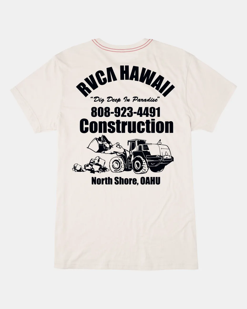 The Dig Deep t-shirt channels Hawaii’s laidback vibes with its vintage washed cotton-poly blend, crew neck, and slim fit. The screen print front and back graphics and red stitching add style that’s meant to last. Featured here in the Antique White colorway.