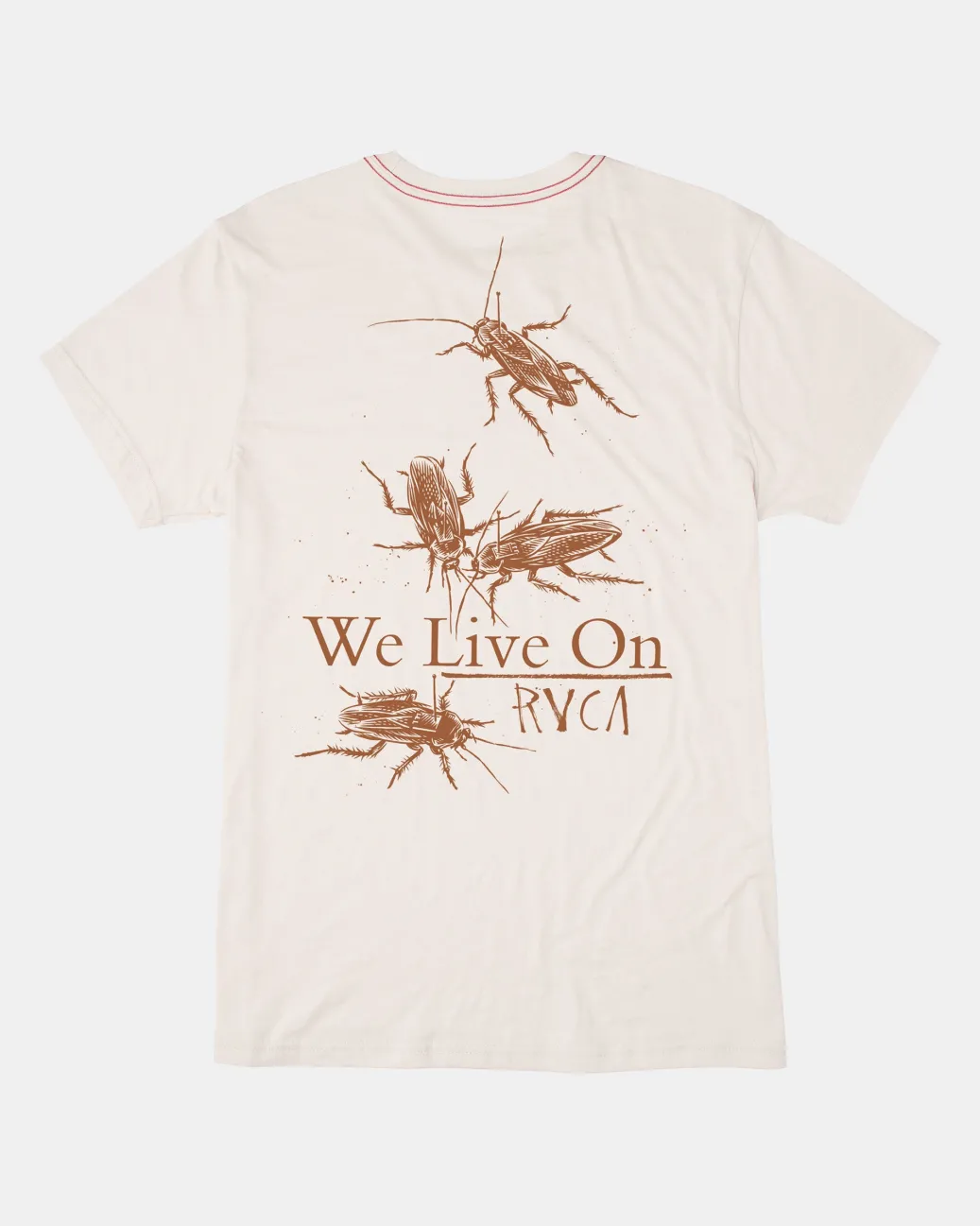 Show off your style with RCVA’s Live On T-Shirt, featuring artwork by ANP artist Ben Horton. Crafted of soft cotton with a vintage look and lightweight feel, this men’s tee has a slim fit and our trademark RVCA red stitch for heritage style. Featured here in the Antique White colorway.