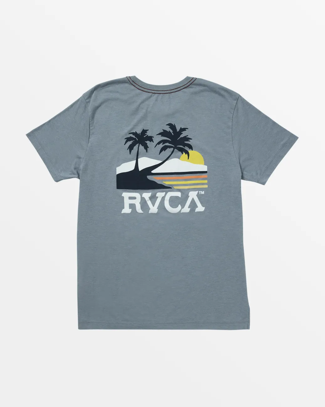 A vintage-dyed tee built for sunny days ahead. The slim fit and crewneck design keeps it classic while the screen printed graphics infuse laidback style. Featured here in the Flint Stone colorway.
