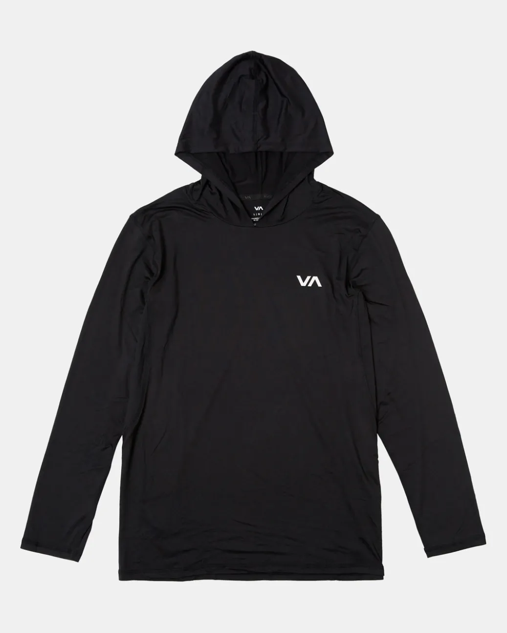 Keep warm, dry and sweat-free with this technical VA Sport Vent hooded top. Made of moisture-wicking, 4-way stretch recycled fabric, the long-sleeve workout top has a slim fit and mesh underarm panels for breathability. Featured here in the Black colorway.