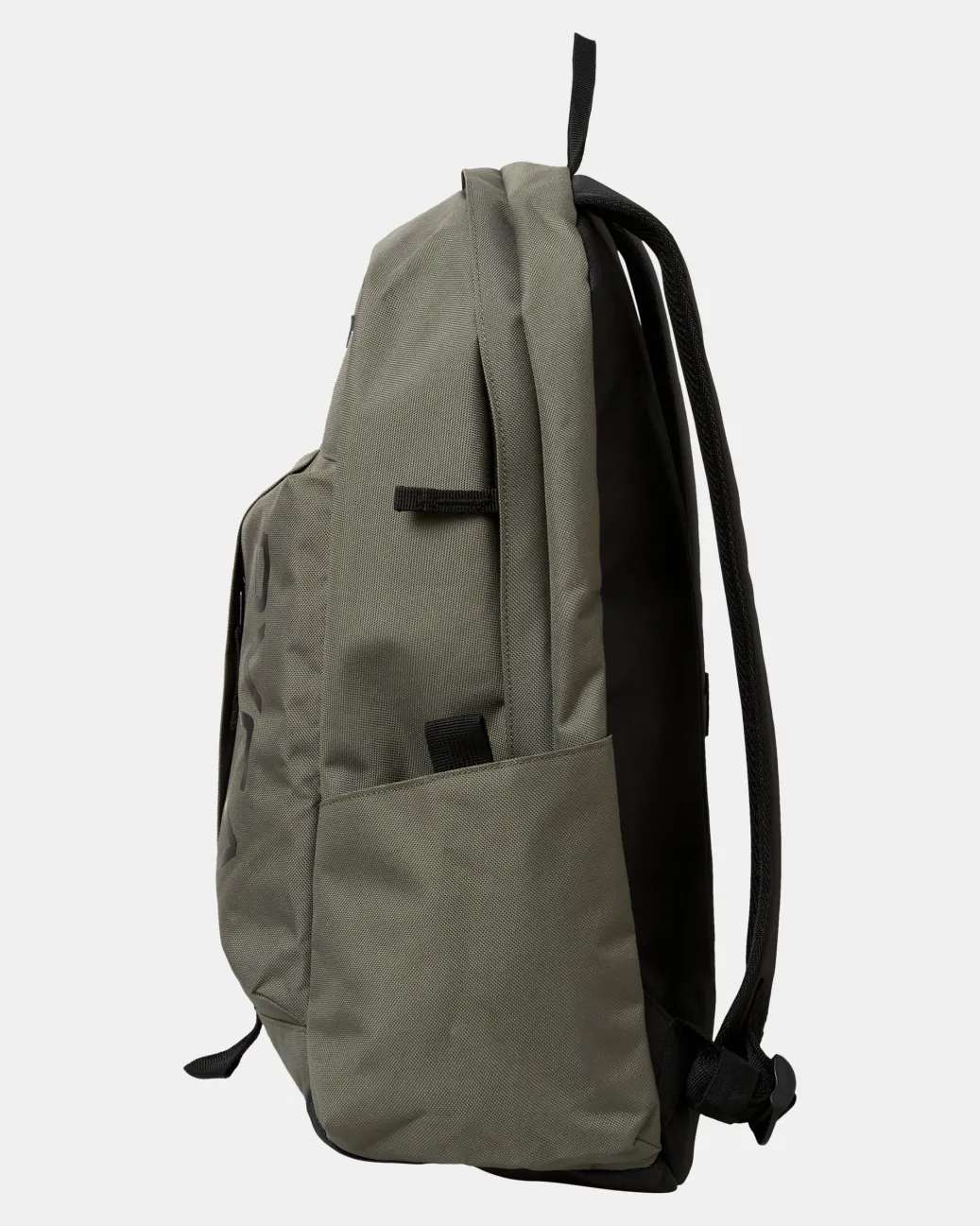 Get ready to conquer the day with RVCA’s EDC Backpack. Made of recycled material, it features a spacious main compartment, convenient pockets, and bold RVCA branding. Featured here in the Dark Olive colorway.