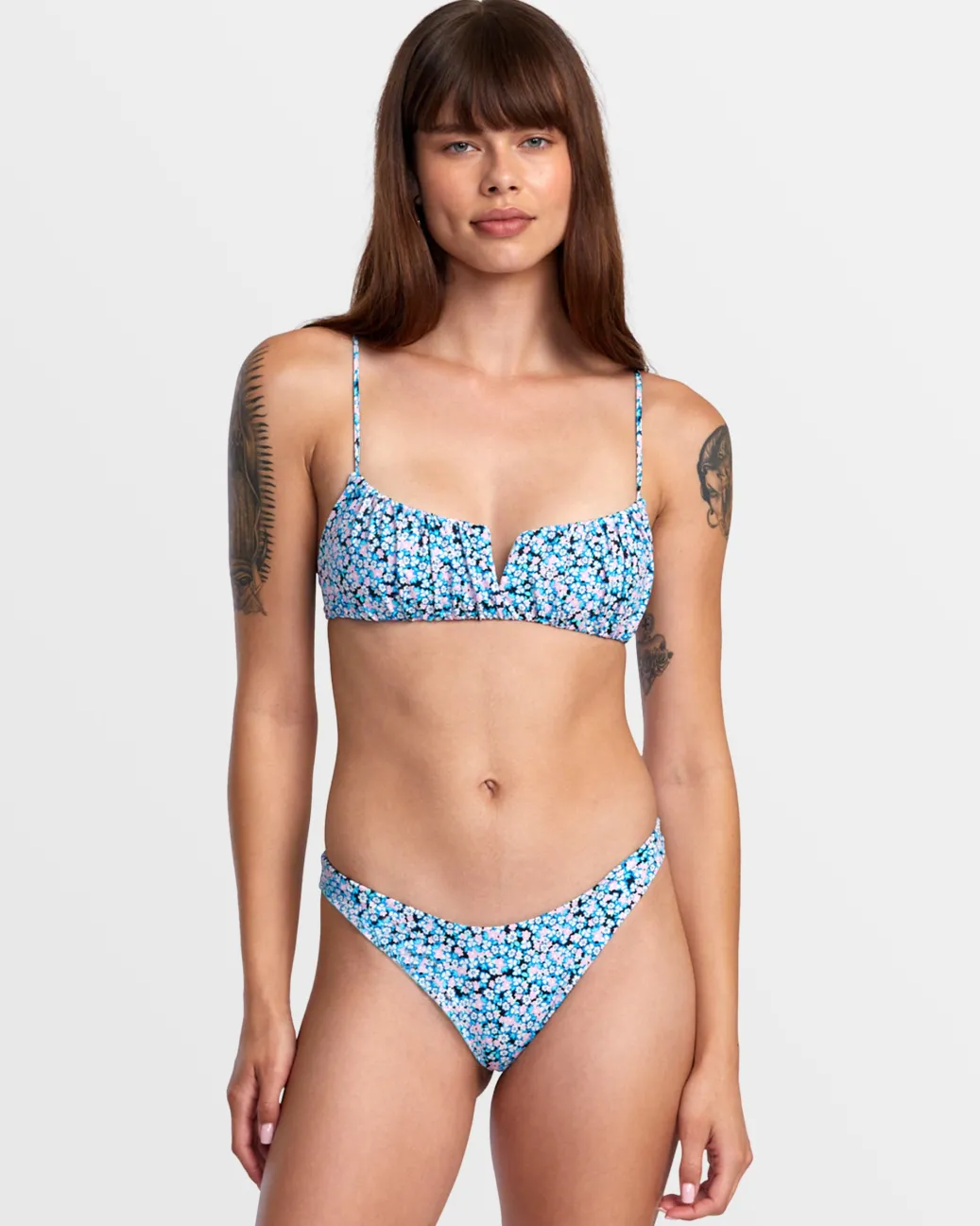 This medium-coverage bikini bottom from RVCA’s Sprinkles swim collection combines a high leg and a mid-rise waist. Best worn high on the hip to compliment your curves, it features a micro-floral print on partially recycled nylon fabric. Featured here in the Black Floral colorway.