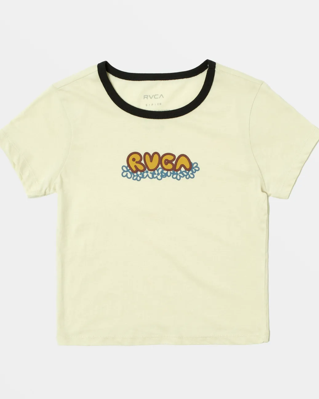 Crafted of lightweight cotton fabric, the Flower Bed retro ringer tee has a snug fit with a screened front graphic and a softener wash to give it a well-worn feel from Day 1. Featured here in the Black colorway.