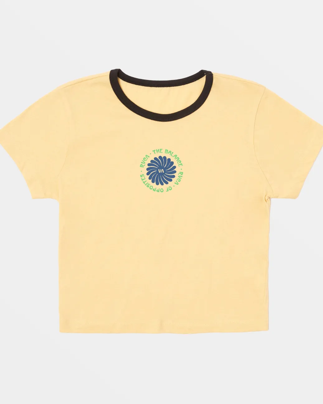 Crafted from ultra-lightweight jersey fabric, RVCA’s Shrunken Ringer T-Shirt features a screen print graphic and contrast ribbing for a unique look. Featured here in the Sahara Sun colorway.